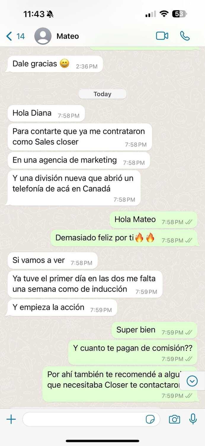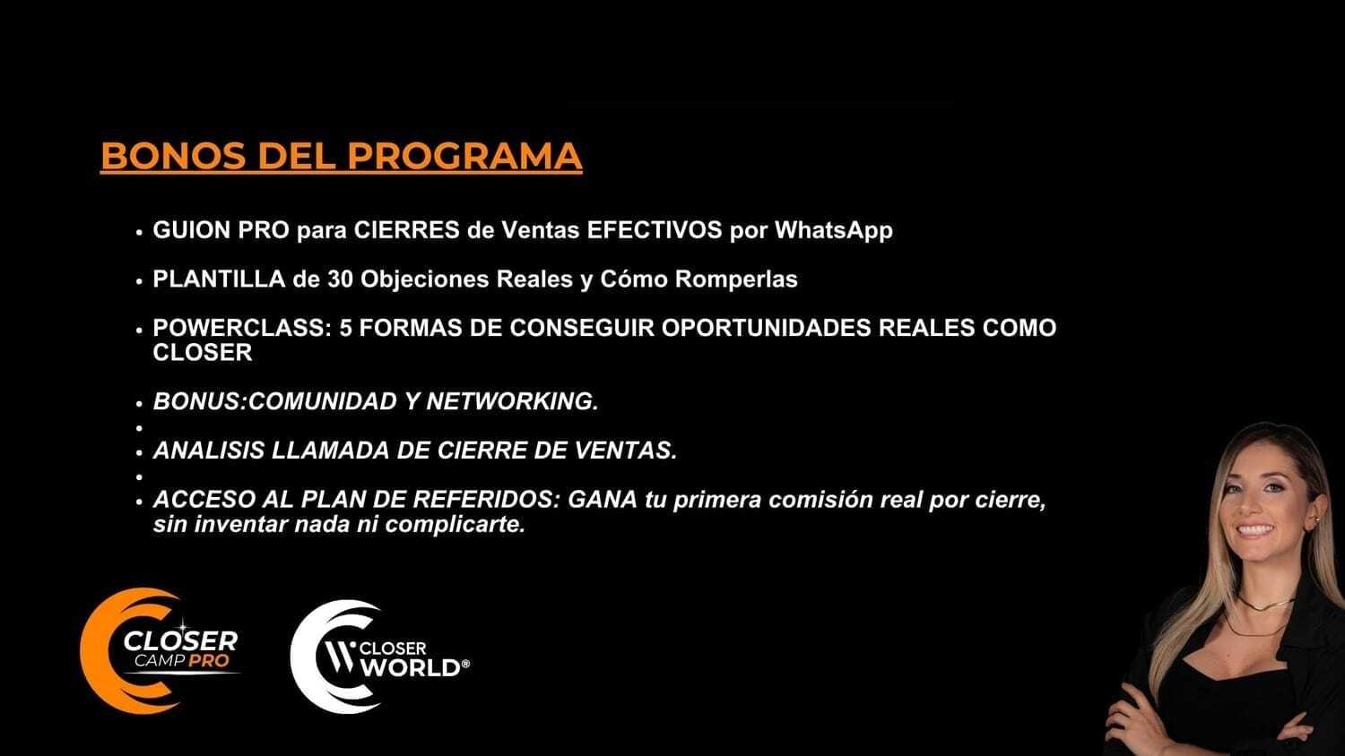 Gracias a Closer de Ventas, ahora puedo cerrar ventas que nunca imaginé. En solo 30 días, pasé de no saber nada a ganar $1,200 en comisiones. ¡Una oportunidad única!